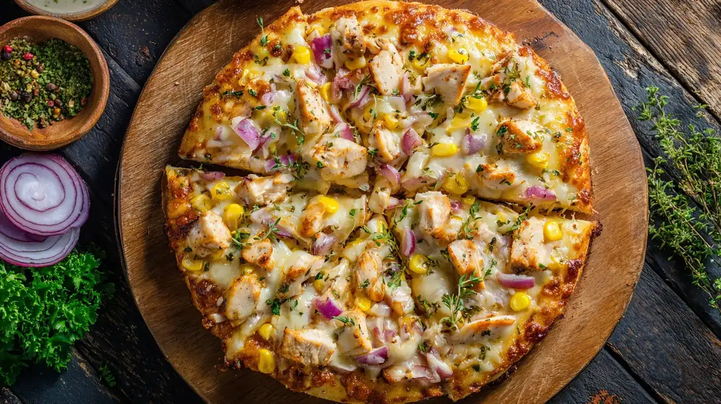 American Pizza mit Hühnchen, Zwiebeln und Mais – Schnell, Kinderfreundlich & Lecker