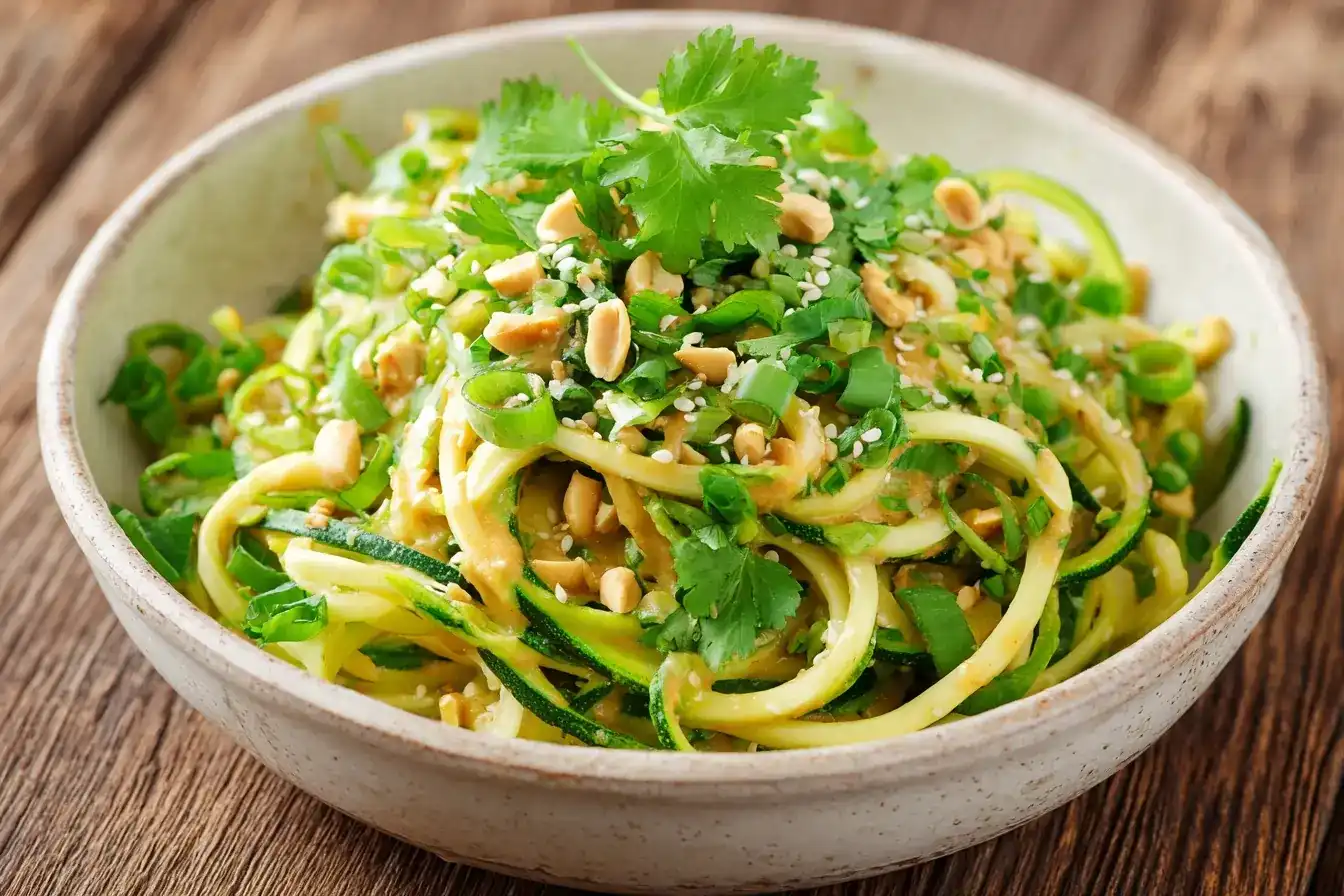 Kalte Zucchini-Nudeln mit Erdnuss-Sesam-Soße – Erfrischendes 40-Minuten-Sommerrezept