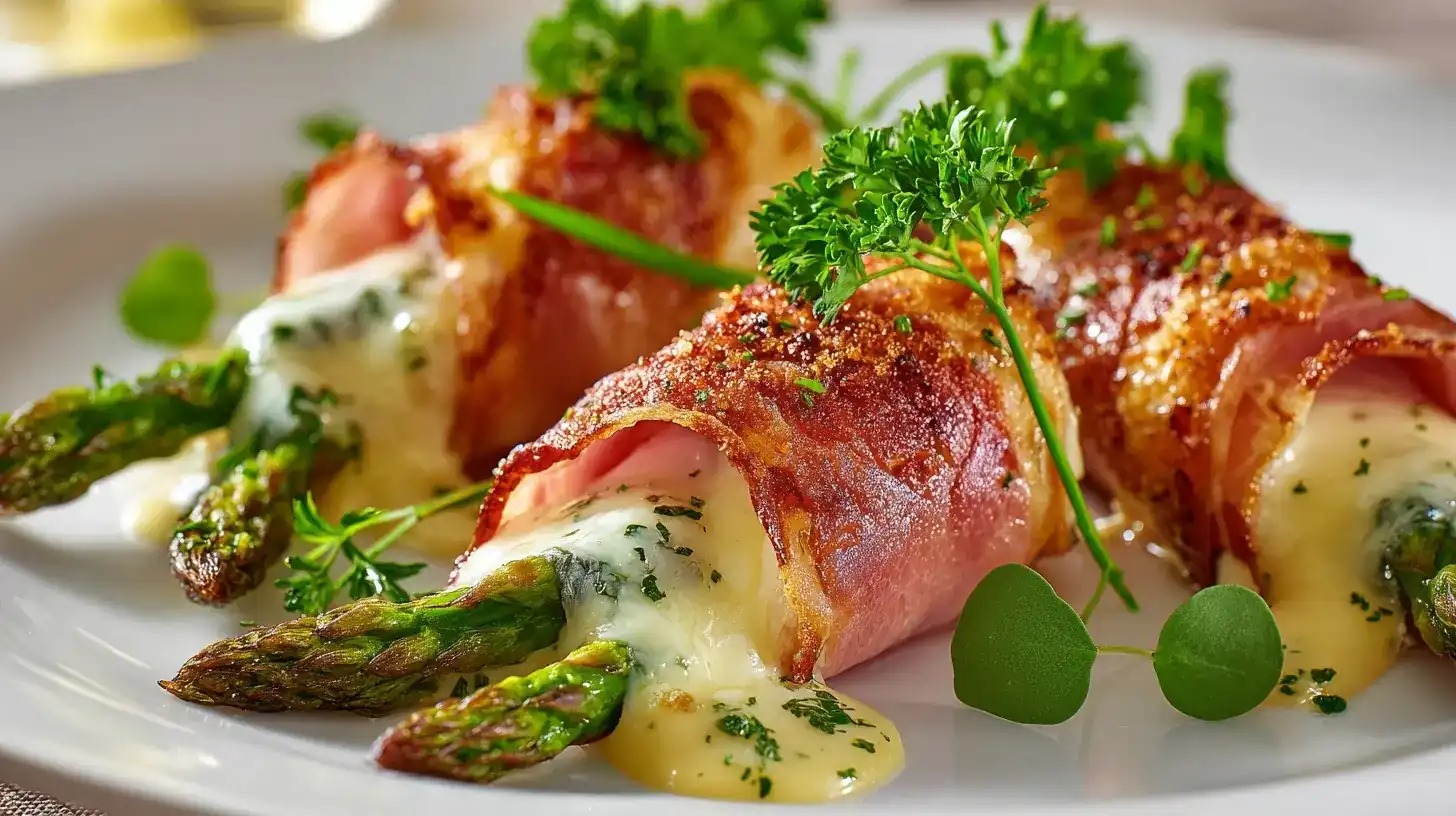 Spargel Cordon Bleu Röllchen – Knusprige, gefüllte Spargelröllchen mit Käse und Schinken