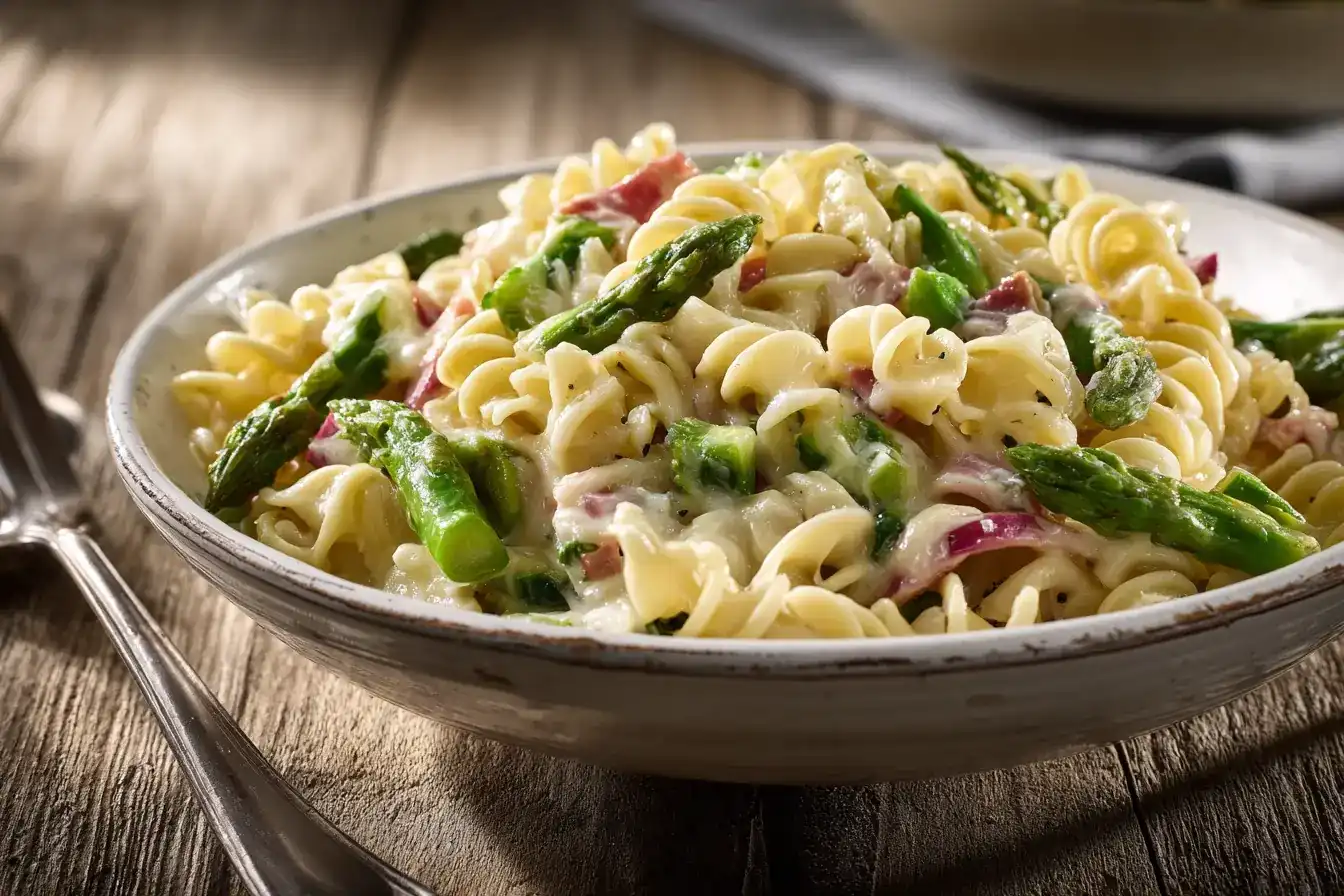 Was ist Spargel-Nudelpfanne mit Schinken und Sahne?