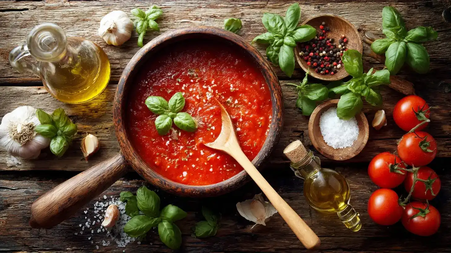 Ein klassisches Grundrezept der italienischen Küche ist die Tomatensoße, die aus wenigen, aber geschmackvollen Zutaten zubereitet wird. Langsam gekochte Tomaten sind das Herzstück, um ihr volles Aroma zu entwickeln. Eine Soße, die pur oder als Grundlage für zahlreiche andere Gerichte dient, entsteht durch das Verfeinern mit Zwiebeln, Knoblauch, Kräutern und einer kleinen Prise Zucker. Sie schmeckt nicht nur intensiver als alles aus dem Supermarkt, sondern kann auch perfekt an die eigenen Vorlieben angepasst werden: Selbstgemacht ist einfach besser!
